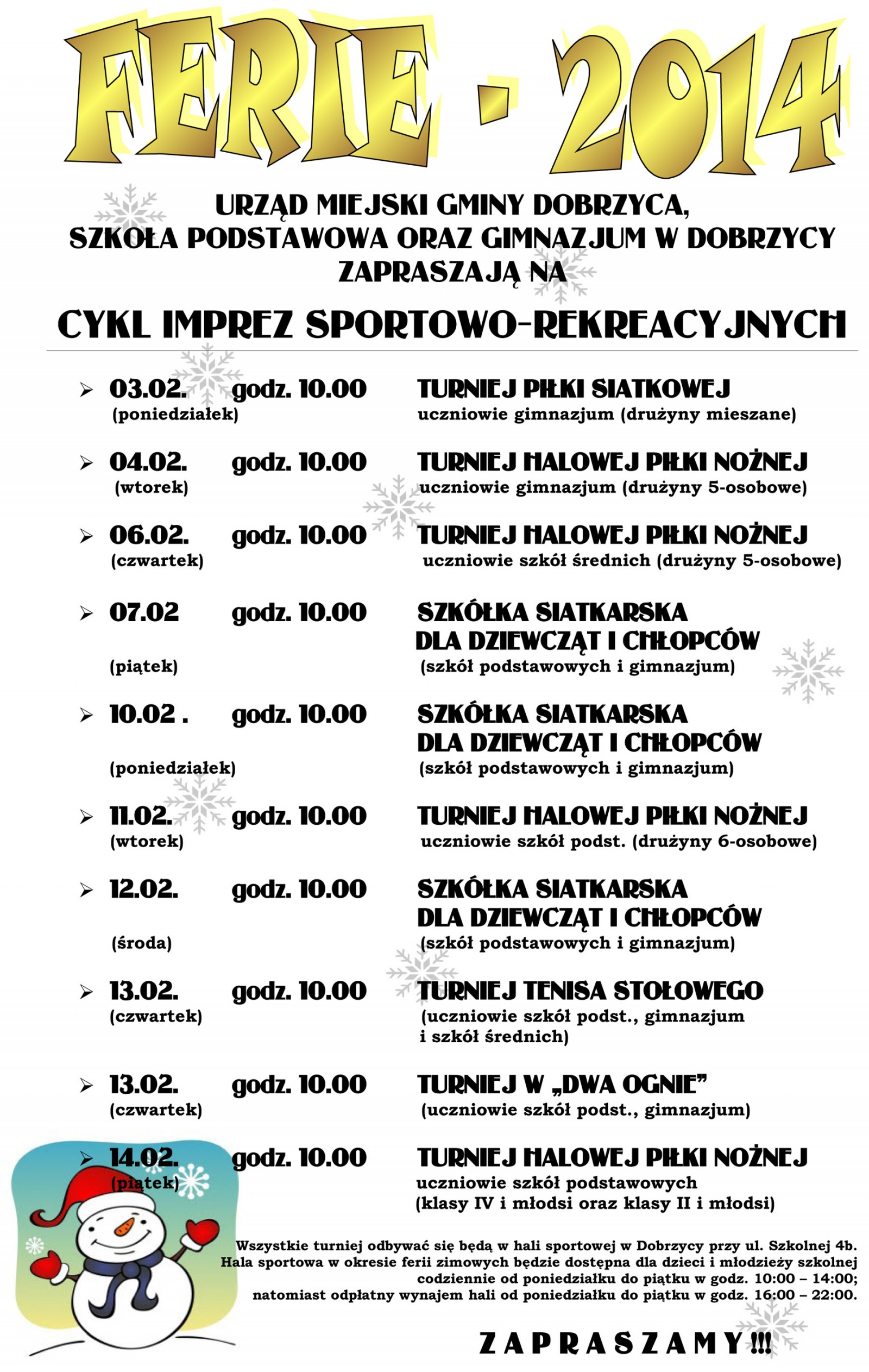 Co robić w ferie w gminie Dobrzyca?