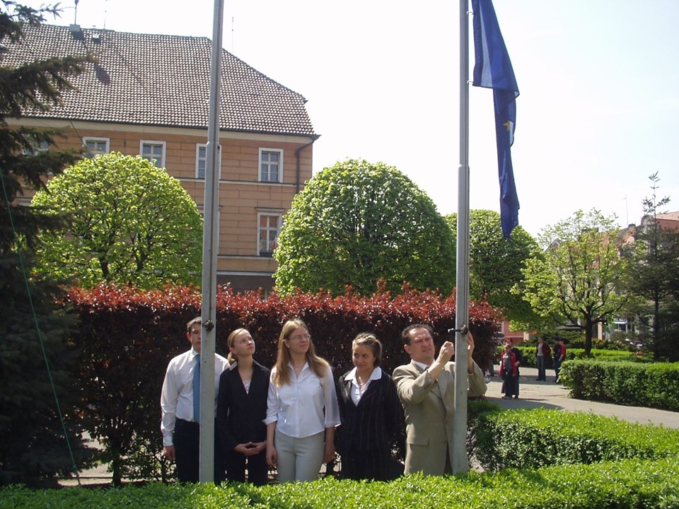 W Rynku w Pleszewie, z udziałem burmistrza oraz młodzieży ze szkolnych klubów europejskich odbyła się w roku 2004 uroczystość wciągnięcia na maszt flagi Unii Europejskiej. Nie zabrakło również uroczystości z udziałem ówczesnych władz starostwa powiatowego.