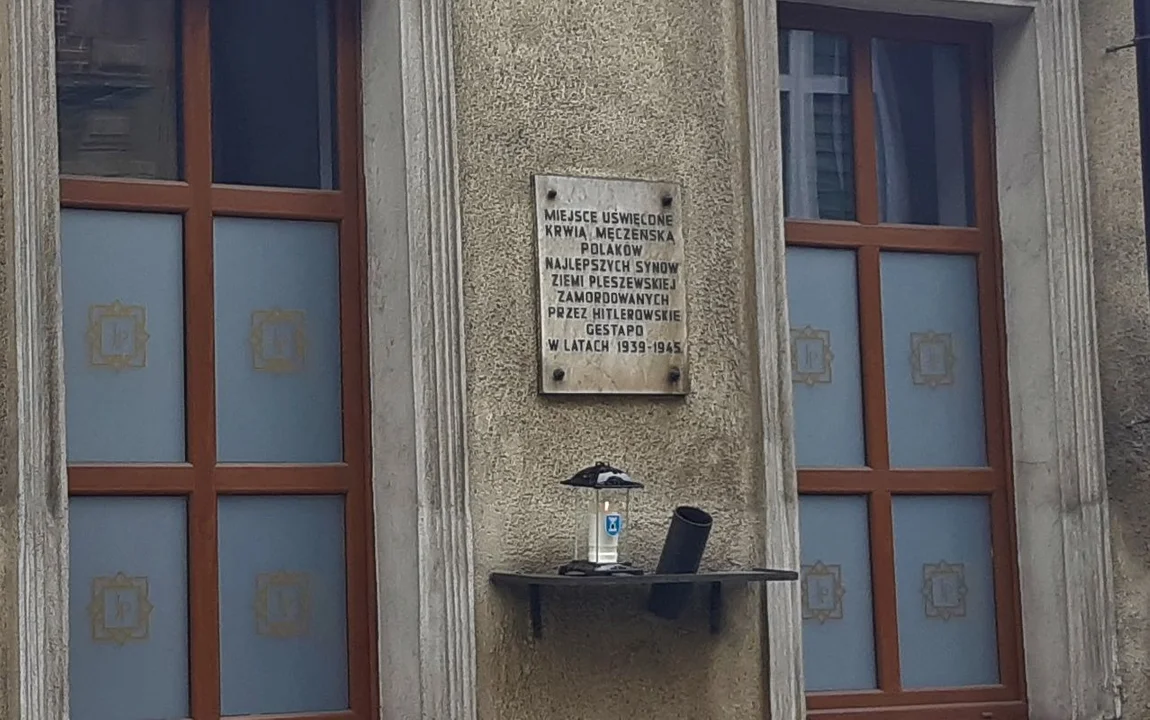 Przypomnijmy: w tym dawnym miejscu gestapowskiego terroru znajduje się tablica upamiętniająca 8 ofiar - osób, które zostały zamordowane w roku 1939. Zwłoki chowano w ogrodzie znajdującym się za siedzibą gestapo - duży grób odnaleziono po wyzwoleniu Pleszewa. 25 maja 1945 r. ekshumowano z kolei zwłoki 8 ofiar.