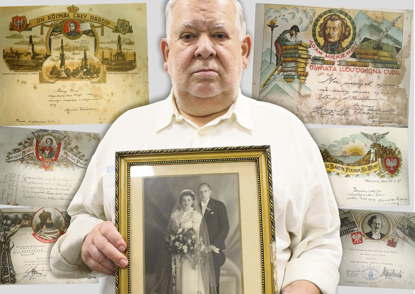 – W 1937 roku mieli ślub – z tej właśnie okazji otrzymali różnego rodzaju patriotyczne telegramy – opowiada pan Tomasz – pokazując na bardzo ciekawą kolekcję tych niezwykłych przesyłek, których historia sięga końca XIX wieku.