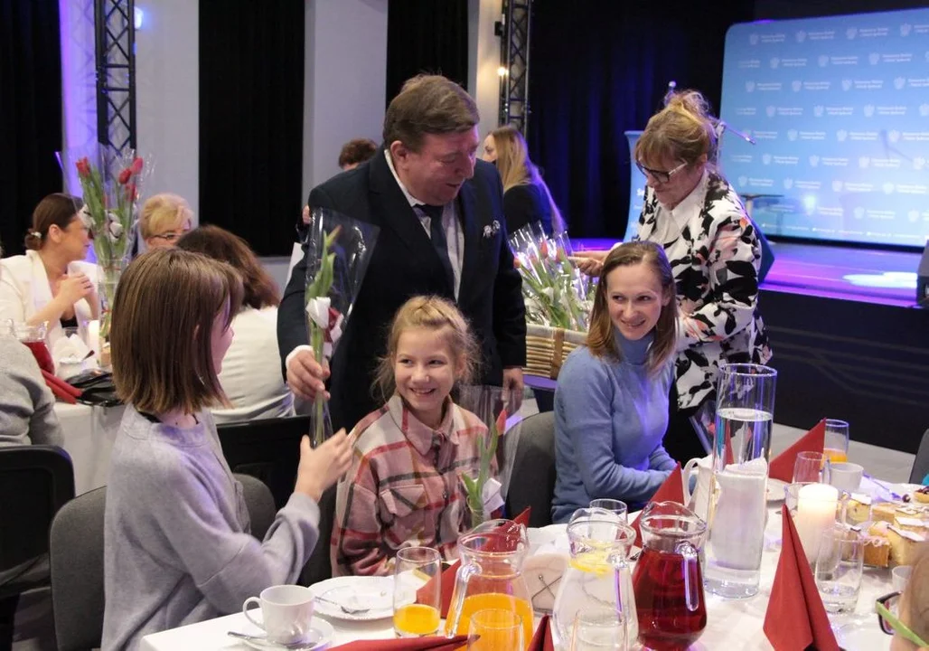 Każda z zaproszonych dziś pań otrzymała ponadto kwiaty, które wręczał Leszek Bierła oraz drobne upominki od minister Maląg.