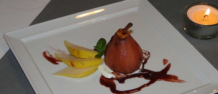 Jesienny deser - gruszka marynowana w czerwonym winie z dodatkiem serka ricotta. Możesz nim zaskoczyć swoich gości. Przepis na gruszkę marynowaną w winie z dodatkiem serka ricotta dostępny jest na Hotblog-u.