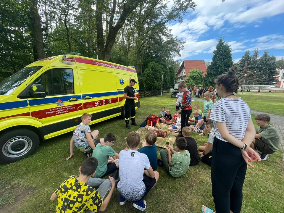 - Na przygotowanych stoiskach edukacyjnych uczestnicy kolonii mogli przypomnieć sobie podstawy udzielania pierwszej pomocy, zasady bezpiecznego zachowania się w czasie wakacji oraz zasady bezpiecznego wypoczynku nad wodą – opowiada st. kpt. Paweł Mimier – z KP PSP Pleszew.