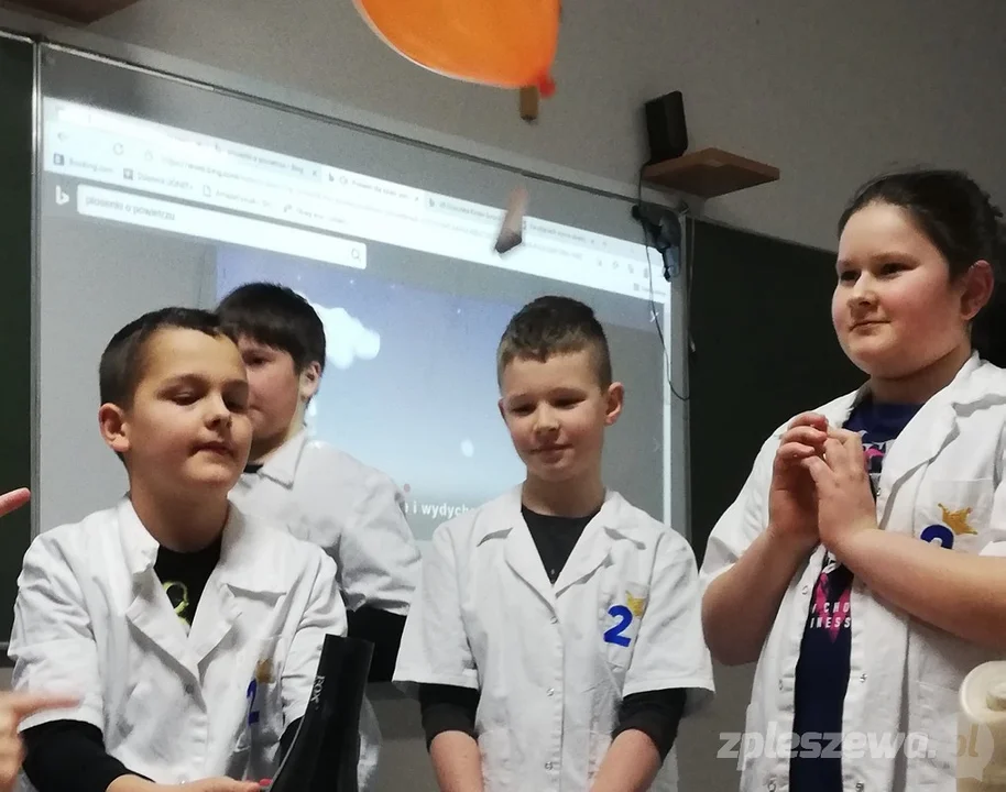 - W ramach zajęć sprawdziliśmy czym oddychamy, czy powietrze istnieje, z czego się składa, czy coś waży, czy na nas naciska. Na warsztatach pojawiły się m. in. doświadczenia: herbata aerodynamiczna, wyrzutnia rakietowa, chmura w butelce, balonowe szaszłyki itp. Dowiedzieliśmy się także co to jest smog oraz wykonaliśmy eksperymenty pokazujące jak groźny jest smog – opowiadają nauczyciele z SP nr 2 w Pleszewie.