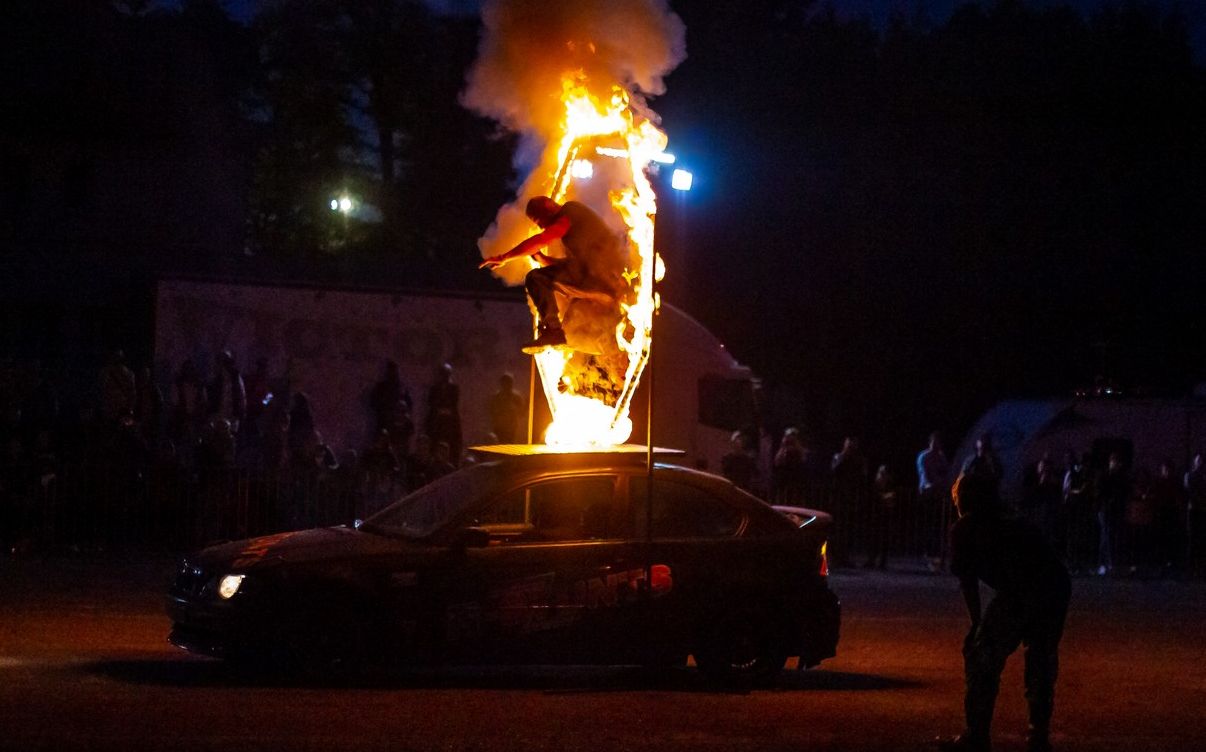 Przejazd przez ścianę ognia, ludzie na maskach pędzących aut, jazda samochodem na dwóch kołach, driftowanie... To zaledwie część atrakcji, jaka czekała na mieszkańców, którzy przybyli na pokaz kaskaderski, który miał miejsce w miniony czwartek w Pleszewie.