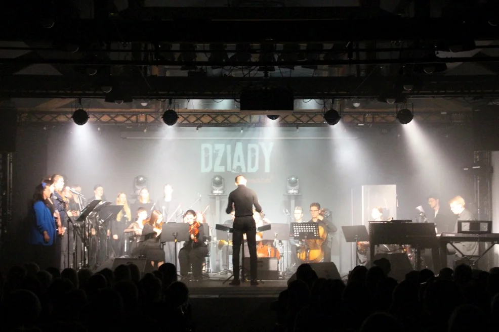 Na scenie obok Pilarskiego stanęła orkiestra składająca się z muzyków, których pleszewianin poznał w trakcie studiów, pochodzących m.in. z naszego miasta i Kalisza. Dyrygował im Michał Plichta. Usłyszeć można było utalentowanych solistów, zespół wokalny, skrzypce, wiolonczele, flet poprzeczny, fagot, waltornię, gitarę basową, perkusję czy fortepian – za którym zasiadł sam kompozytor. Jego interpretacja „Dziadów” wyraźnie zaintrygowała publiczność. Dostarczyła refleksji i wielu momentów wzruszeń. Nie zabrakło też jednak „mrugnięć okiem” w stronę słuchacza, które wywoływały uśmiech.