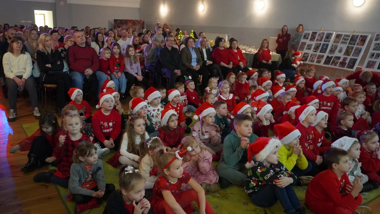 Gwarno, wesoło, rodzinnie i bardzo świątecznie było we wtorkowe popołudnie (2 grudnia 2025) w sali Gminnego Ośrodka Kultury w Choczu. Wszystko za sprawą mikołajkowego spotkania zorganizowanego przez radę rodziców działającą przy przedszkolu. Dzieci z wszystkich grup mogły obejrzeć przedstawienie „Grudniowo na ludowo”, przygotowane przez teatr objazdowy „Kulturka” z Poznania. Spektakl dostarczył dużo humoru, zabawy, ale i elementów edukacyjnych, a przede wszystkim wprowadził w klimat zbliżających się świąt Bożego Narodzenia.