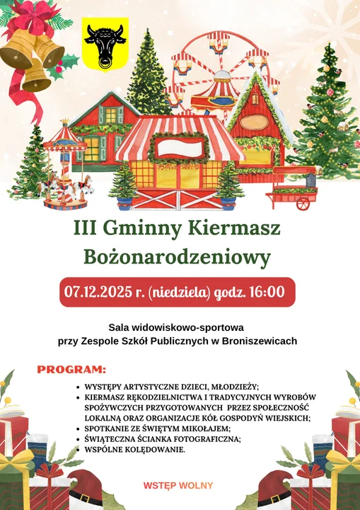 Trzecią edycję wydarzenia zaplanowano w najbliższą niedzielę, 7 grudnia. Wprowadzi ono mieszkańców w klimat nadchodzących świąt Bożego Narodzenia. A co przygotowali organizatorzy?Będą występy artystyczne dzieci i młodzieży, kiermasz rękodzielnictwa i tradycyjnych wyrobów spożywczych przygotowanych przez lokalną społeczność oraz koła gospodyń wiejskich. Najmłodszych z workiem pełnym prezentów odwiedzi święty Mikołaj. Całe rodziny będą miały okazję zrobić pamiątkowe zdjęcia na świątecznej ściance fotograficznej. Nie zabraknie wspólnego kolędowania.