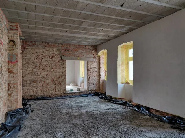 Obecnie ekipy budowlane pracują na wszystkich kondygnacjach głównego obiektu. Wyburzane są ściany, powiększane otwory okienne i usuwane stare tynki. Co ciekawe, budynek zyska nowoczesną izolację z lekkiego betonu komórkowego, a nowa klatka schodowa zostanie wyposażona w windę, dzięki czemu obiekt będzie w pełni dostępny dla osób z niepełnosprawnościami.