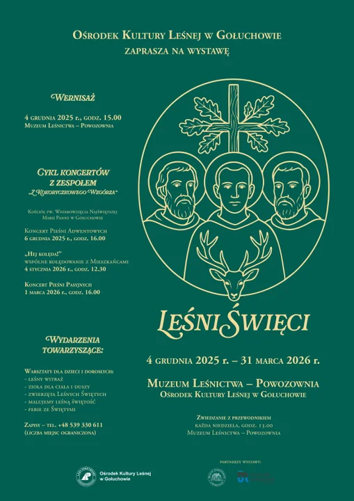 „Leśni Święci” - to tytuł nowej wystawy czasowej, którą już od 4 grudnia będzie można podziwiać w Ośrodku Kultury Leśnej w Gołuchowie. Czwartkowy wernisaż w Muzeum Leśnictwa – Powozowni rozpocznie się o 15.00.