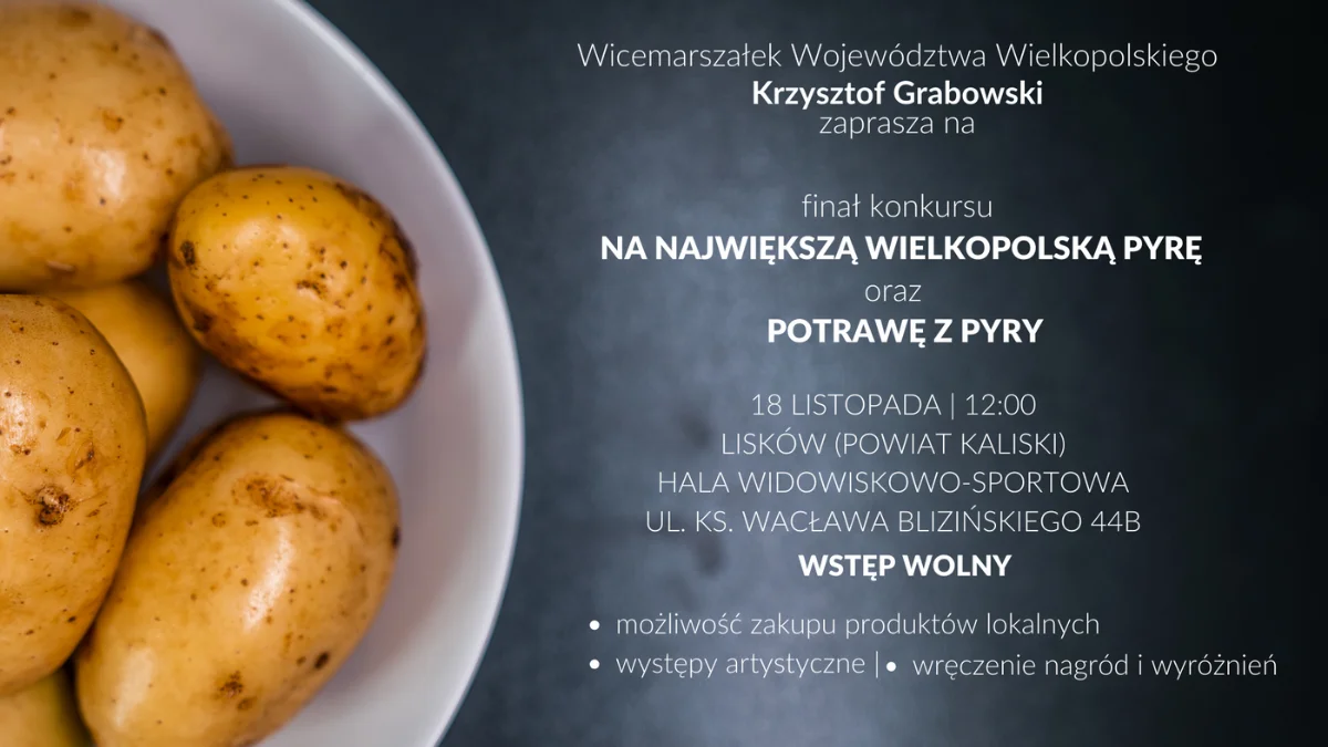 Finał zeszłorocznego konkursu na największą pyrę i potrawę z pyry odbył się w Ostrzeszowie. W tym roku zapraszamy do Liskowa (powiat kaliski).