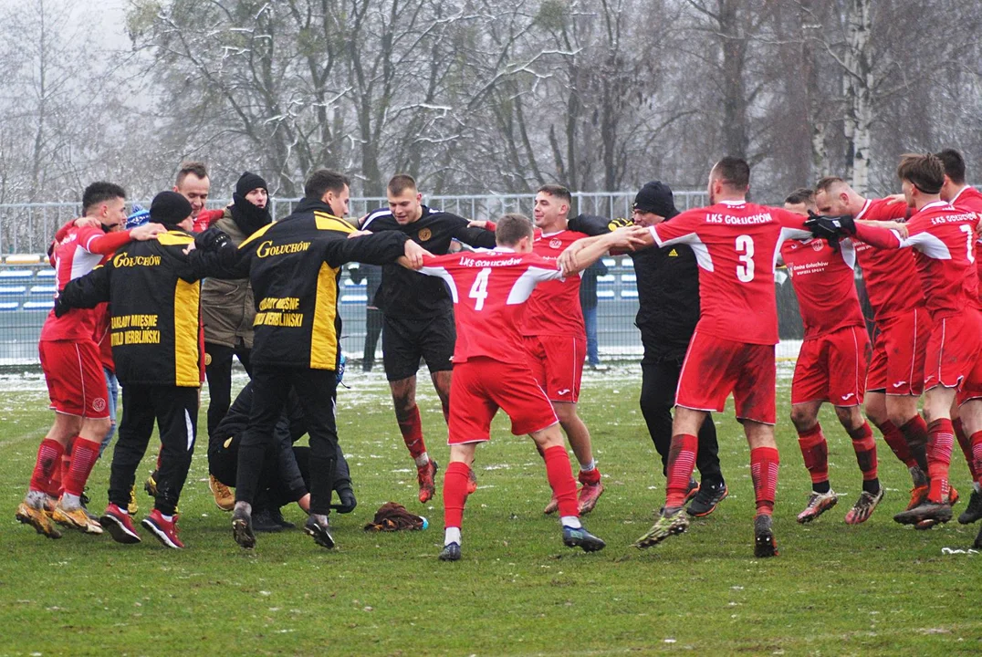 Mimo trudnych warunków, jakie panowały na boisku, potrafiliśmy tą piłką grać, opanować tą całą sytuację boiskową. Ale jak zwykle staliśmy się dobrymi Mikołajami i podarowaliśmy jedną akcję w pierwszej połowie przeciwnikowi, który ją wykorzystał. W przerwie powiedziałem, że nic nie zmieniamy, bo graliśmy całkiem dobre zawody. Jedyne co, to mieliśmy przyśpieszyć zmienianie piłki z jednego sektora do drugiego, aby szybciej przeciwnik musiał przesuwać się w strefie. Gdy długo to robiliśmy, to łatwo się ustawiał do nas i potrafił te pojedynki jeden na jeden z nami wygrywać. Myślę, że to przyniosło skutek w drugiej połowie. Na ławce mieliśmy tylko jednego zawodnika na zmianę, ale to już nasza taka wizytówka od sześciu tygodni. Im nas mniej, tym zespół więcej daje od siebie, z takim charakterem powalczyliśmy i trzy punkty zostały w Gołuchowie.