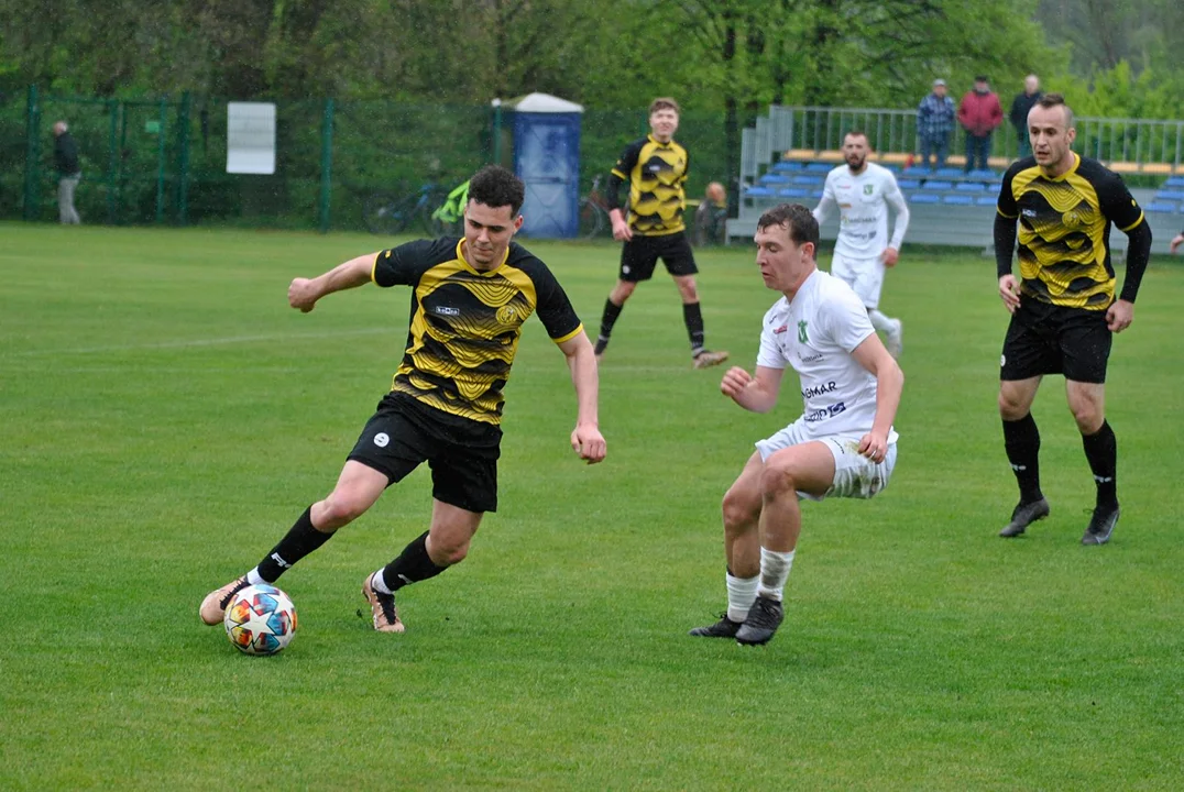 W pierwszej połowie dwie niezłe sytuacje miał Mikołaj Jankowski, jednak to gołuchowianie cieszyli się z gola. Marcin Wandzel skorzystał z dośrodkowania z rzutu rożnego Patryka Kieliby i pokonał wrzesińskiego bramkarza, Jana Perzyńskiego. Kto wie, czy gołuchowianie nie dowieźliby wygranej do końcowego gwizdka sędziego, gdyby nie czwarta w tym sezonie konieczność gry w osłabieniu. Tym razem czerwoną kartkę w wyniku dwóch żółtych obejrzał Jakub Szymkowiak. Miejscowi niemal natychmiast odrobili straty, ale więcej razy gołuchowska blok defensywny nie dał się zaskoczyć. Owszem, w doliczonym czasie gry Mikołaj Jankowski miał klasyczną „setkę”, jednak Filip Szwedziak był górą.
