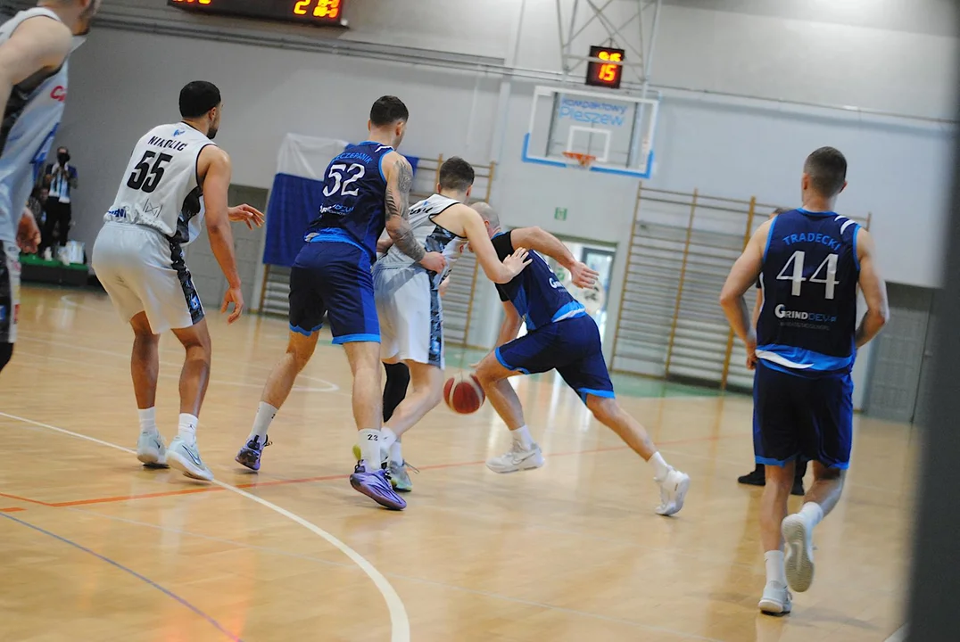 Miało być trudno – i było. Pogoń przyjechała do Pleszewa na fali sensacyjnego zwycięstwa nad Sklepem Polskim MKK Gniezno, ale gospodarze szybko pokazali, kto rządzi na parkiecie. Start 7:0, pełna kontrola i aż 19 punktów przewagi do przerwy (50:31). Kosz – przy wspaniałym dopingu publiczności - grał koncertowo. Gdy na początku trzeciej kwarty Jacek Rutecki efektownym wsadem podwyższył prowadzenie do 24 punktów, wielu kibiców mogło pomyśleć, że już jest „po meczu”. Nic bardziej mylnego.
