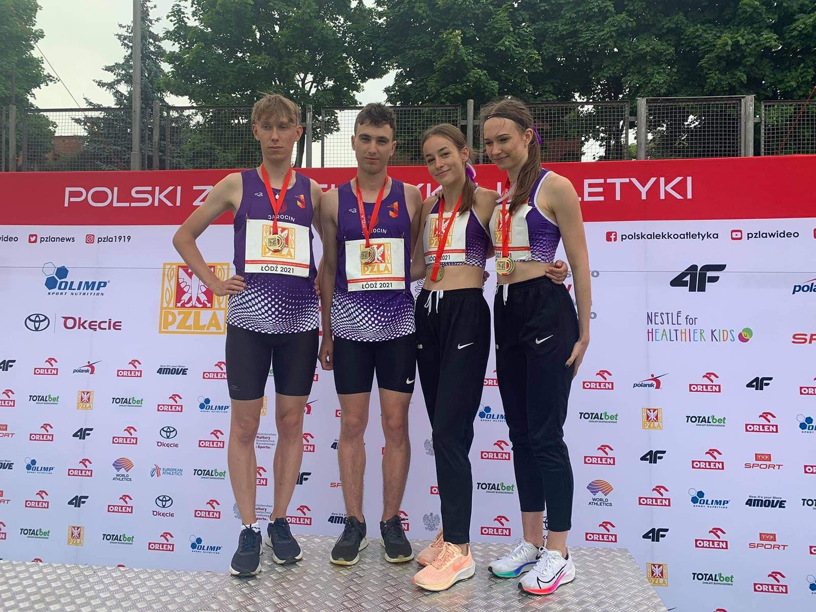 Olga Czajka (I LO Pleszew) oraz Paweł Marzyński (NLO Pleszew), reprezentowali barwy MKL Jarocin, do którego są wypożyczeni, w 4. PZLA Mistrzostwach Polski w Sztafetach. Wraz z Marceliną Gościniak i Marcelem Chmielem zdobyli „złoto” w sztafecie 4X400m MIX juniorów młodszych (3:35,55). Zawody odbyły się dzisiaj w Łodzi. Trenerką naszych zawodników jest Patrycja Kruchowska-Wojcieszak.