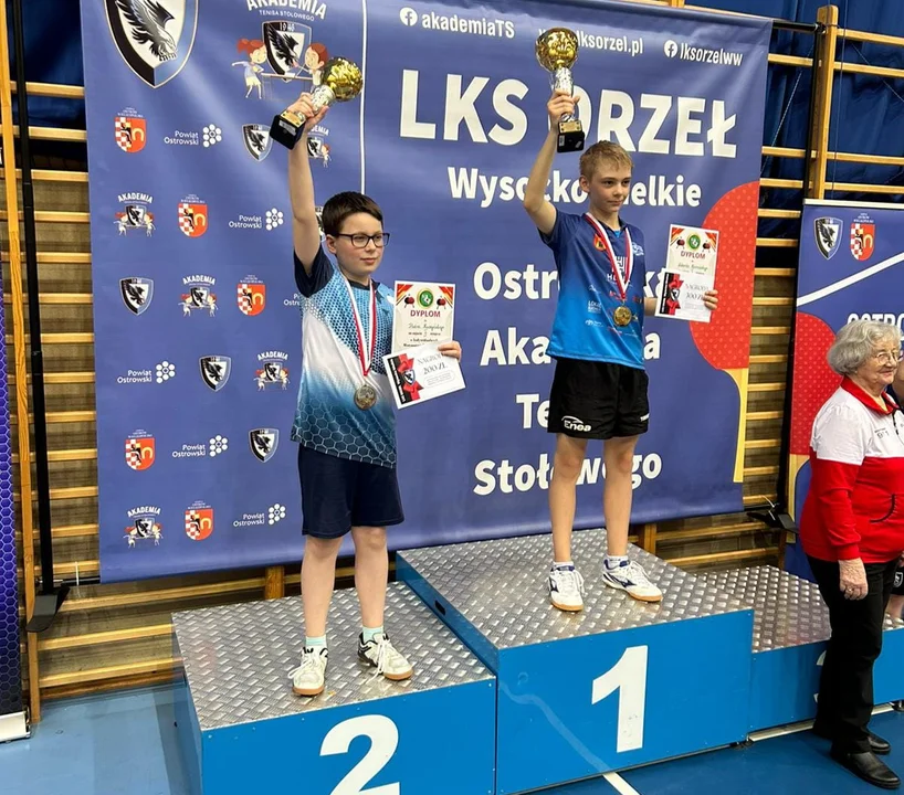 Do dwóch najlepszych zawodników tej fazy dołączyli trzej tenisiści stołowi, posiadający limit krajowy. Uczeń z pleszewskiej „Dwójki” kontynuował znakomite występy. Zwyciężył 3:1 Dominika Siąkowskiego (MUKS Kings of the Table Przeźmierowo) i 3:0 Tymona Kokota (Tajfun Ostrów Wielkopolski). Nie sprostał jedynie najlepszemu w tej kategorii wiekowej w Polsce Hubertowi Kwiecińskiemu (Wicher Lisiec Wielki). Starszy o rok zawodnik został zatem mistrzem Wielkopolski, nasz reprezentant stanął na drugim stopniu podium. Ale to nie jedyny sukces, jaki Piotr osiągnął przy tenisowych stołach w Raszkowie. Zakwalifikował się bowiem do Indywidualnych Mistrzostw Polski Młodzików. Zawody odbędą się w dniach 3-5 maja w Sępólnie Krajeńskim. Brawa należą się także Wiktorowi Talarowi, który zaopiekował się naszym tenisistą podczas turnieju w Raszkowie.