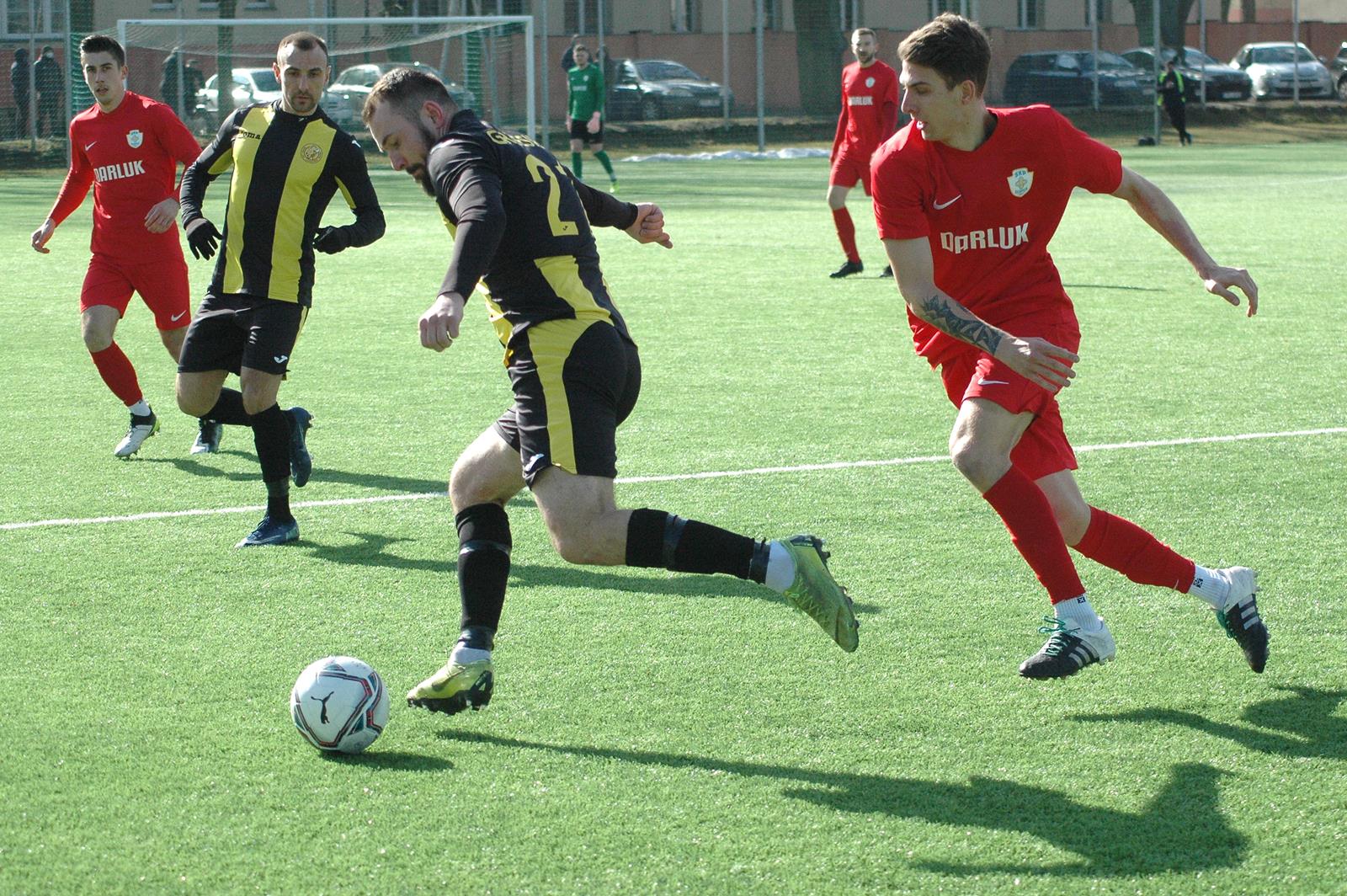 Mogli nawet objąć prowadzenie, marnując dwie niezłe okazje bramkowe. LKS przebudził się po kwadransie z okładem. Dwukrotnie bliskie powodzenia były uderzenia Krystiana Benuszaka. Nie udało się, ale do trzech razy sztuka.