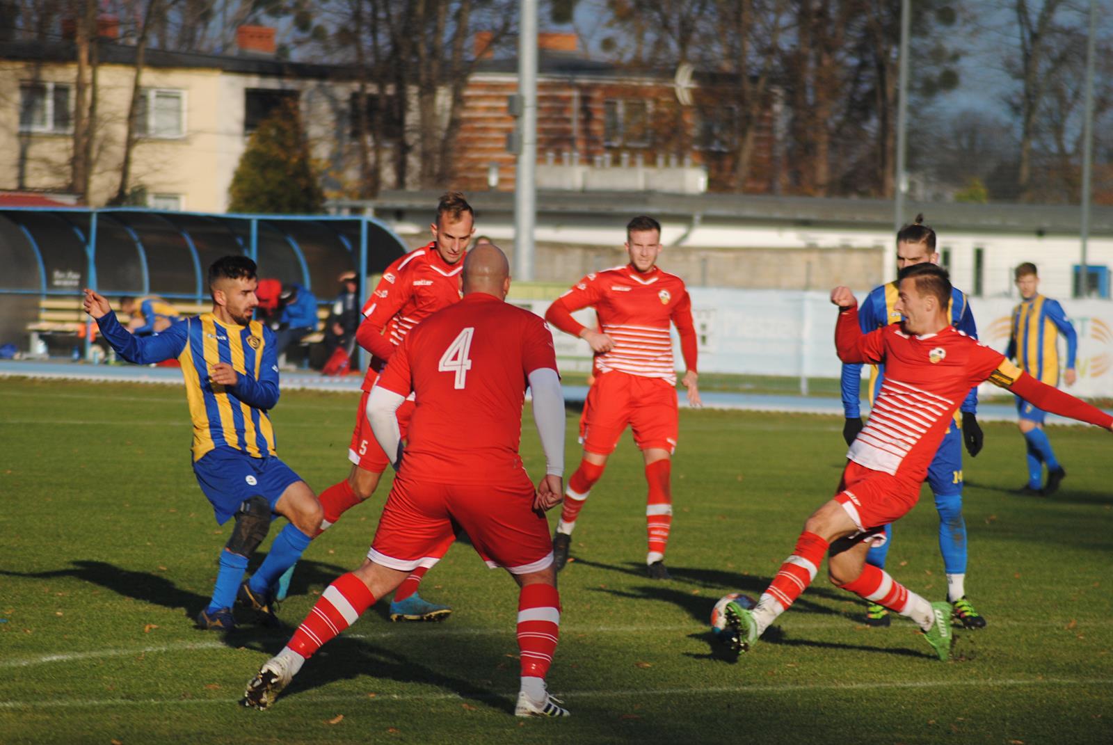 Stalowcy przez większą część meczu mieli optyczną przewagę, ale nie potrafili tego przekuć na zdobycze bramkowe. Tymczasem w doliczonym czasie pierwszej połowy Kacper Grzmil wykorzystał złe wyprowadzenie piłki przez Dawida Sassa i zdobył gola dla swojej drużyny.