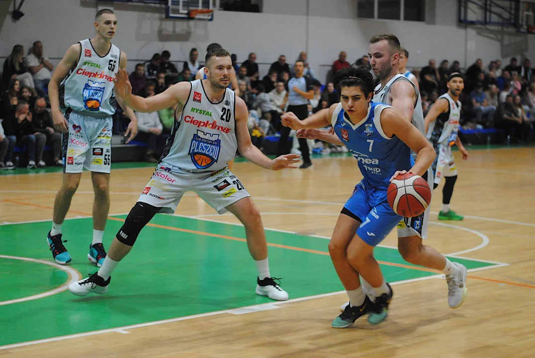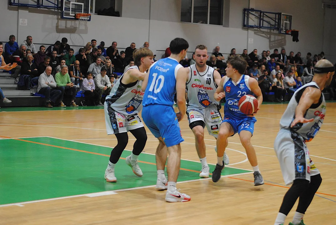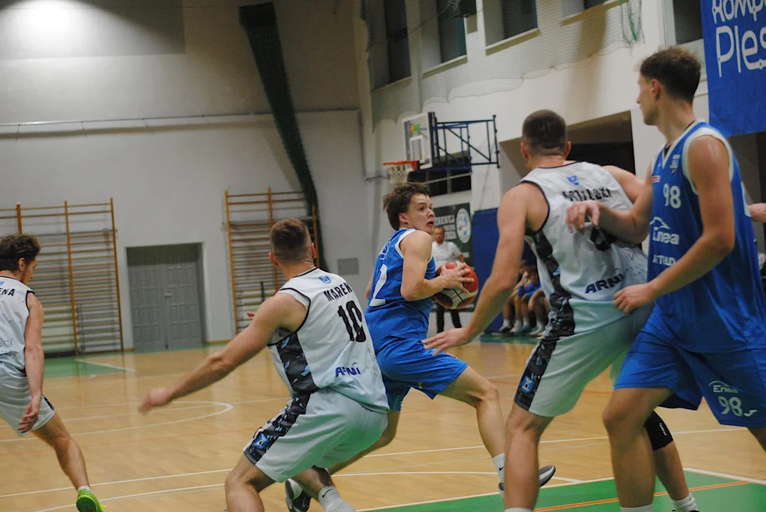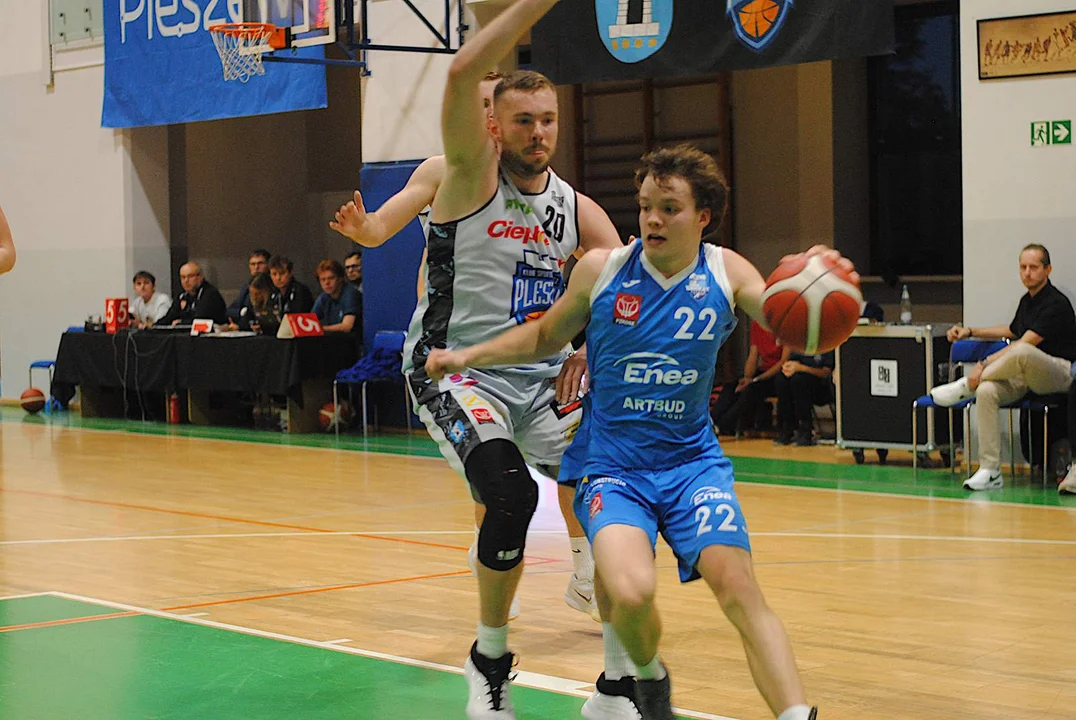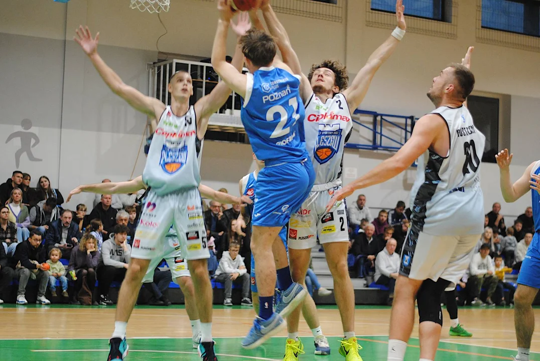 Poznaniacy rozegrali do tej pory jeden mecz, w którym wysoko pokonali Sudety Jelenia Góra. Do Pleszewa przyjechali z zamiarem zgarnięcia pełnej puli i wysoko zawiesili pleszewskiej ekipie poprzeczkę. W 8’ zwyciężali 18:10 i choć drużyna trenerów Alana Urbaniaka i Filipa Gawrońskiego jeszcze przed końcem pierwszej połowy straty odrobiła z nawiązką, to trzecia kwarta zdecydowanie należała do nich. Pod koniec tej odsłony drużyna ze stolicy Wielkopolski wygrywała 54:46. Świetnym rzutem z dystansu popisał się w ostatniej sekundzie Marcin Pławucki, niwelując straty do pięciu oczek. Ostrowianin, który przed laty występował już w barwach Kosza, zaliczył udany powrót, a jego double-double, złożone z 11 asyst i 10 punktów, jest tego dowodem.