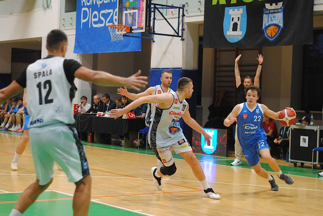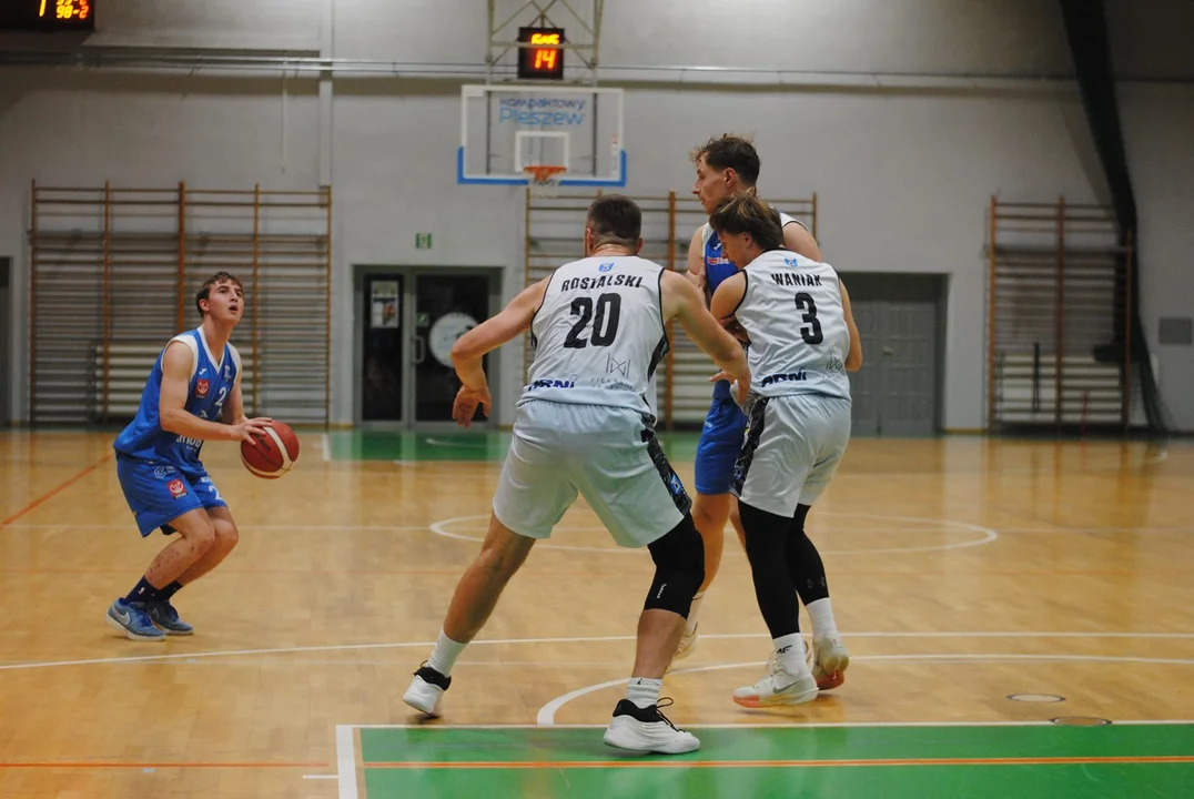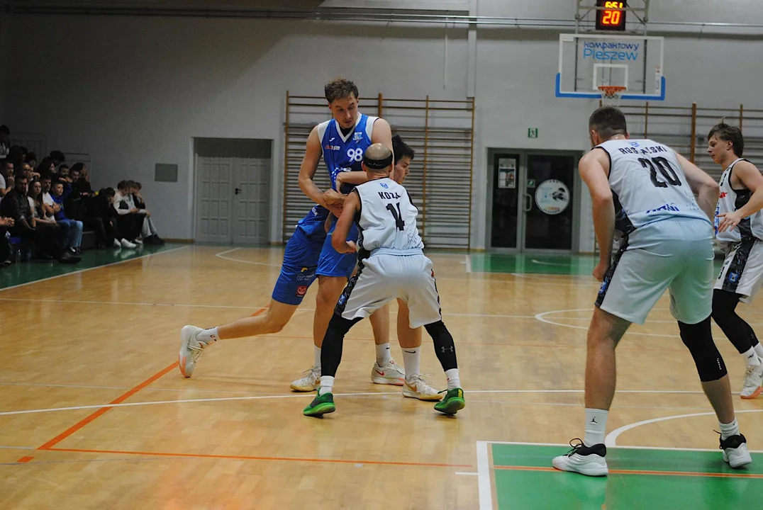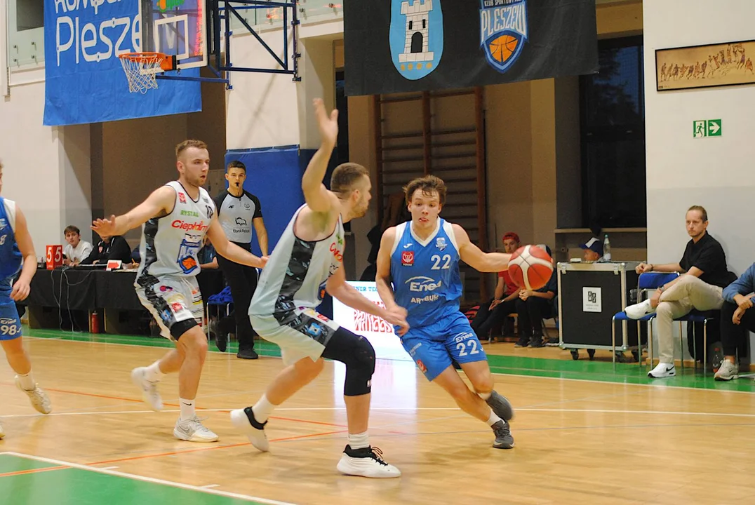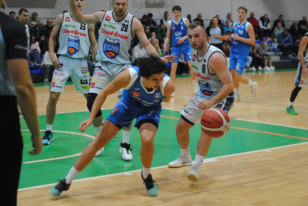 Poznaniacy rozegrali do tej pory jeden mecz, w którym wysoko pokonali Sudety Jelenia Góra. Do Pleszewa przyjechali z zamiarem zgarnięcia pełnej puli i wysoko zawiesili pleszewskiej ekipie poprzeczkę. W 8’ zwyciężali 18:10 i choć drużyna trenerów Alana Urbaniaka i Filipa Gawrońskiego jeszcze przed końcem pierwszej połowy straty odrobiła z nawiązką, to trzecia kwarta zdecydowanie należała do nich. Pod koniec tej odsłony drużyna ze stolicy Wielkopolski wygrywała 54:46. Świetnym rzutem z dystansu popisał się w ostatniej sekundzie Marcin Pławucki, niwelując straty do pięciu oczek. Ostrowianin, który przed laty występował już w barwach Kosza, zaliczył udany powrót, a jego double-double, złożone z 11 asyst i 10 punktów, jest tego dowodem.