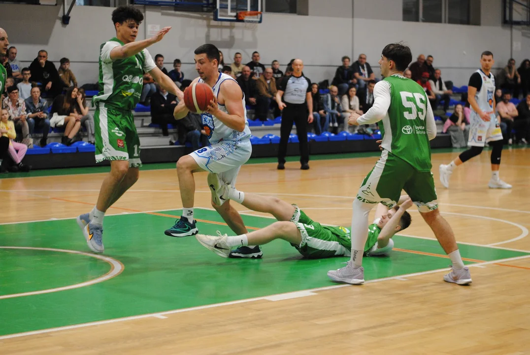 Przez kolejnych pięć minut nasz zespół zdołał powiększyć swój dorobek tylko o jeden punkt, przeciwnicy zdobyli ich 14 i po „trójce” Jakuba Kowackiego zwyciężali 70:66. Kosz nie poddał się, a emocje sięgnęły zenitu, gdy Julian Kuczyński wyprowadził swoją drużynę na prowadzenie 72:70. Na siedem sekund przed zakończeniem Natan Kubka trafił zza łuku i znów górą był Zastal. Przewinienie techniczne Kamila Olejnika dało pleszewianom rzut wolny, wykorzystany przez De Ante Barnesa. Amerykanin z polskim paszportem mógł zresztą załatwić sprawę, bo po chwili był faulowany, zmarnował jednak obie próby. Remis 72:72 i do wyłonienia zwycięzcy potrzebna była pięciominutowa dogrywka.