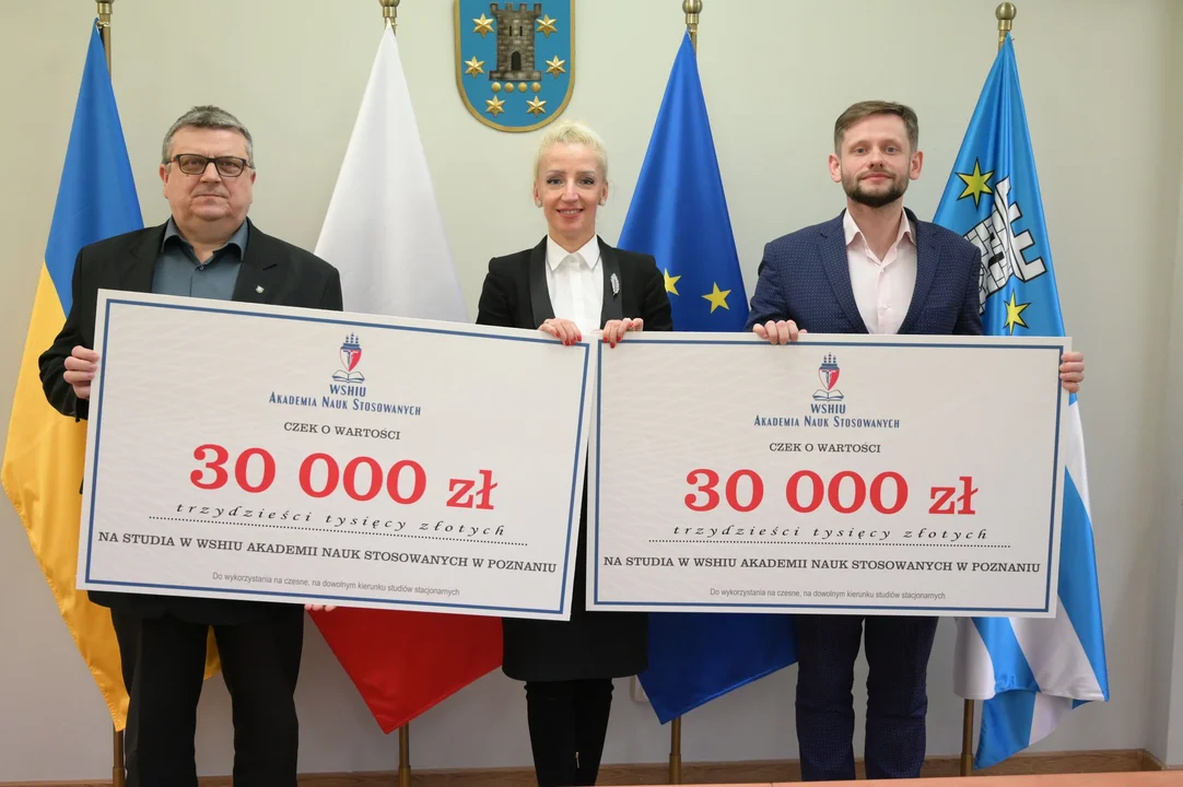 W tym roku będzie podobnie. Czeki już przyjechały do Pleszewa. Z rąk założycielki Akademii WSHiU Magdaleny Górskiej odebrał je wicestarosta Damian Szwedziak.