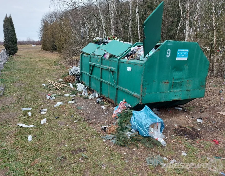 Śmieci na cmentarzu komunalnym w Pleszewie