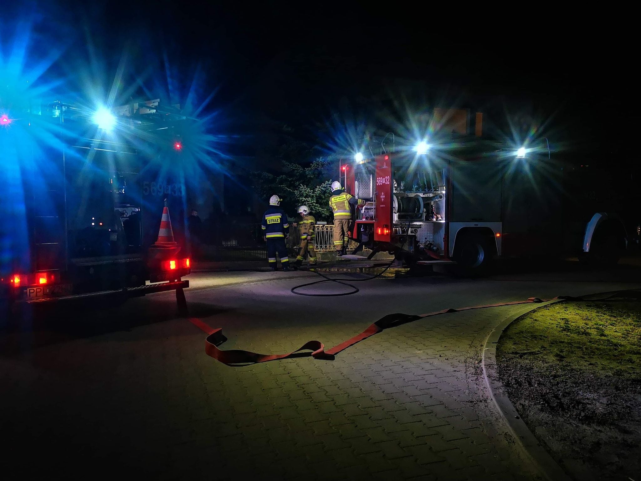 Po dotarciu na miejsce pożaru, natychmiast przystąpili do działań gaśniczych przy pomocy piany gaśniczej z linii szybkiego natarcia, dzięki czemu skutecznie stłumiono i ugaszono pożar. Po przybyciu kolejnego zastępu, oddymiono pomieszczenia piwniczne oraz sprawdzono przy pomocy kamery termowizyjnej czy nie ma ukrytych zarzewi ognia i dogaszono tlące się pozostałości.