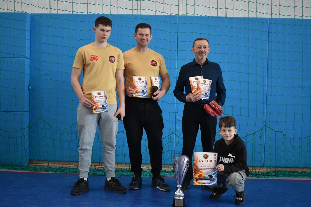 Po sześciu latach przerwy strażacy ochotnicy specjalizujący się w grze w tenisa stołowego znów zmierzyli się w powiatowym turnieju o puchar Zarządu Oddziału Powiatowego Związku OSP RP w Pleszewie. W sobotę, 11 kwietnia 2026 roku, najlepsi zawodnicy gminnych eliminacji stawili się w sali sportowej w Gizałkach. 21 druhów rywalizowało w pięciu kategoriach wiekowych. Ponadto prowadzono klasyfikację drużynową. Mecze rozgrywano do dwóch wygranych setów. Świetnie poradziła sobie jedyna kobieta w stawce. Marcelina Wojtkowska wygrała cztery pojedynki i pewnie zwyciężyła w gronie seniorów.