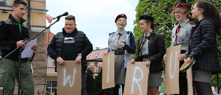 Pleszewscy harcerze zorganizowali na rynku obchody Święta Flagi Rzeczpospolitej Polskiej.