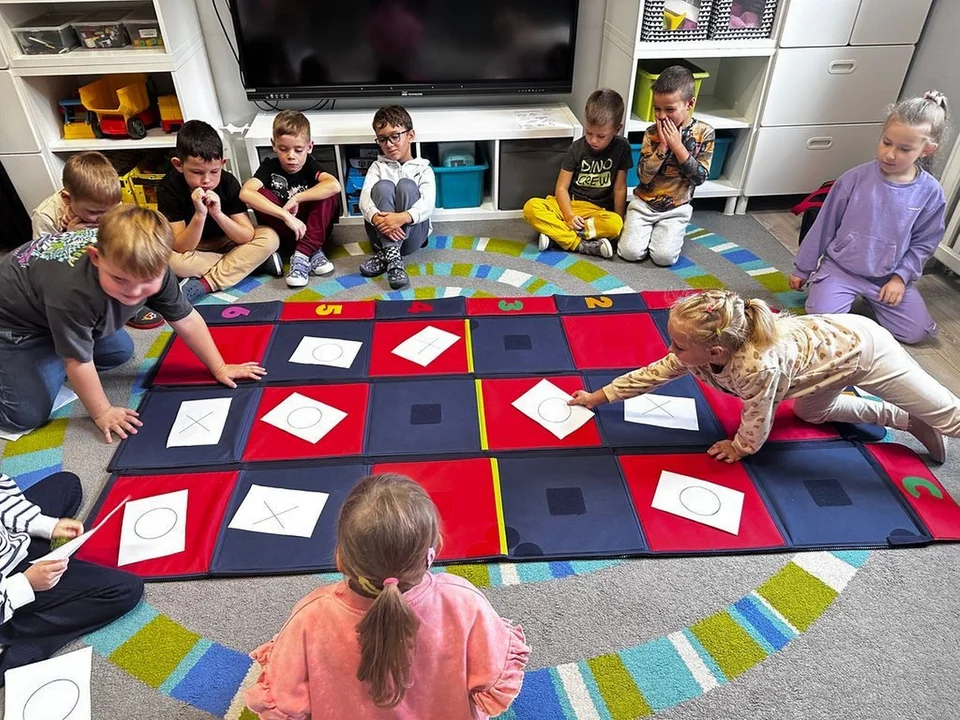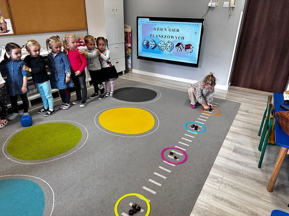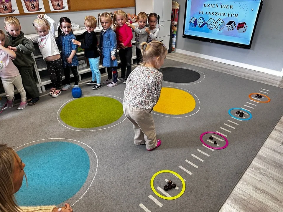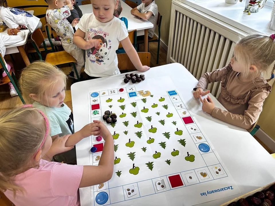 Dzieci z ogromnym zaangażowaniem zasiadły do wspólnej gry. Wybór gier był szeroki – od prostych zręcznościowych po klasyczne wyścigi pionków, które wymagały skupienia i przestrzegania zasad. Dzięki temu planszówki pomogły przedszkolakom w ćwiczeniu: