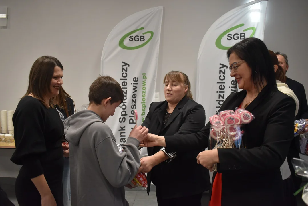 Prezes banku Mariola Walendowska osobiście wręczała upominki najmłodszym gościom.