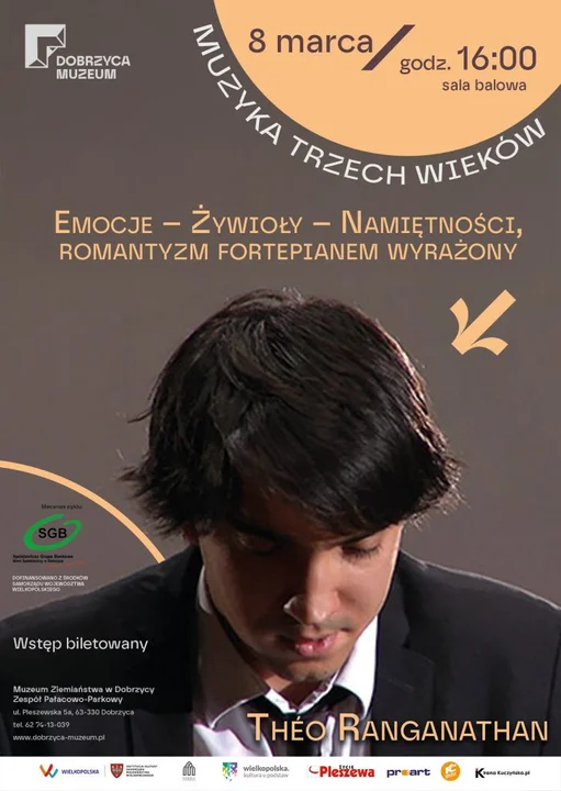 Muzeum Ziemiaństwa w Dobrzycy zaprasza na kolejną muzyczną ucztę. W święto pań, 8 marca 2026 roku, w sali balowej pałacu odbędzie się koncert „Emocje – Żywioły – Namiętności, romantyzm fortepianem wyrażony”. Tym razem swoje umiejętności zaprezentuje utalentowany francusko-indyjski pianista Théo Ranganathan.