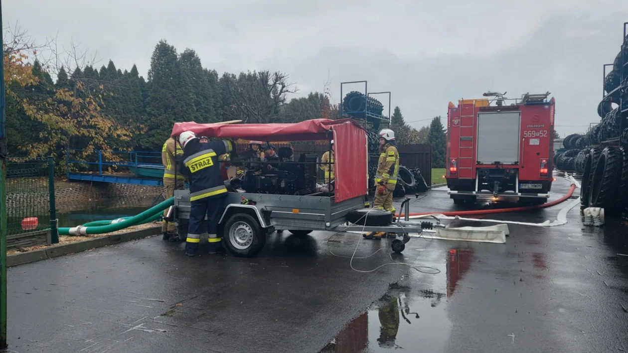Deszczowa pogoda dała o sobie znać w powiecie pleszewskim. Straż pożarna została wezwana dziś (poniedziałek - 3 listopada 2025) na teren jednej z firm przy ul. Poznańskiej w Kościelnej Wsi.
