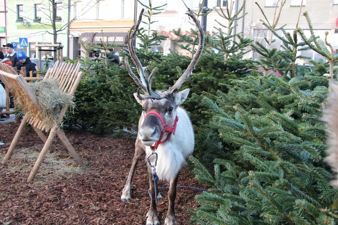 Na pleszewskim Rynku stanęła zagroda z żywymi reniferami, oczywiście oswojonymi i z opiekunem.