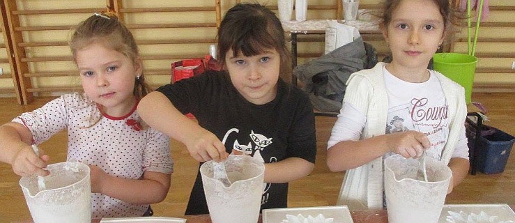 W szkole w Karminie odbyły się warsztaty tworzenia z gipsu dla wszystkich dzieci.