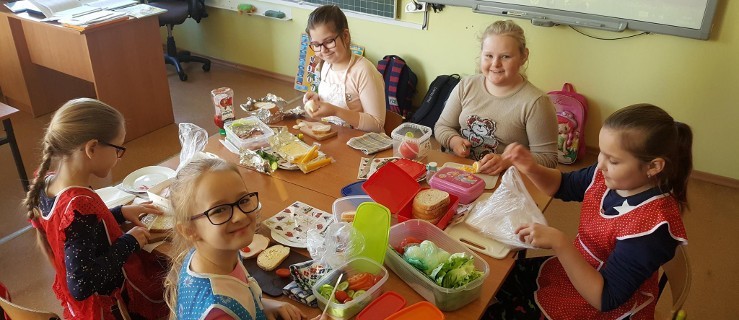 Dzieci przyniosły do szkoły potrzebne produkty. Można śmiało powiedzieć, że zadanie wykonały doskonale. Kanapki nie tylko były smaczne i zdrowe, ale także pięknie ozdobione i pełne witamin. Na robieniu kanapek skorzystała cała szkoła, bo uczniowie częstowali wszystkich. Z kolei klasa IV, żeby uczcić wiosnę, przygotowała sałatki z pomocą swojej pani, Beaty Matyjasik.