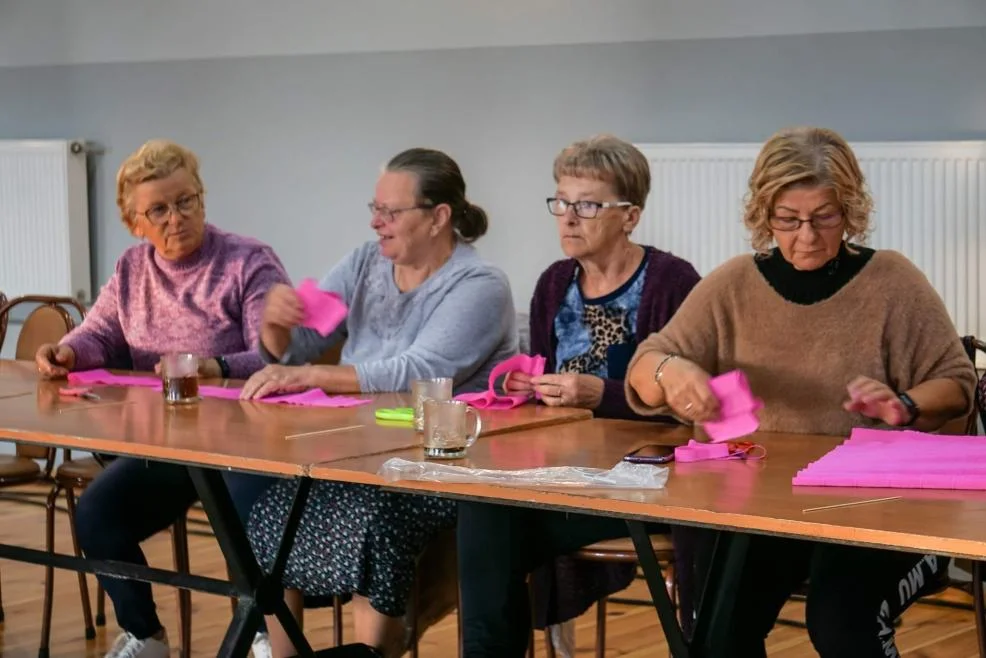 Ich ostatnie spotkanie w ramach projektu poświęcone było tradycjom ludowym. Na nim bowiem członkinie KGW spróbowały swoich sił w warsztatach rękodzielniczych prowadzonych przez Honoratę Majorowicz-Dalhe. Z jej pomocą wykonywały kolorowe kwiaty z bibuły.