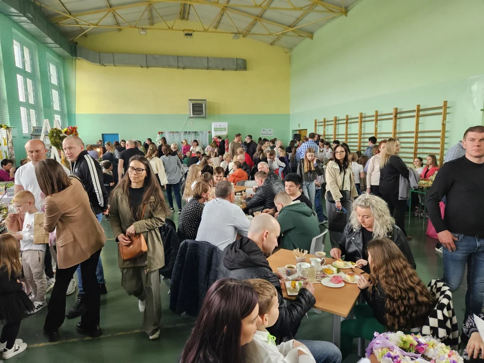 Atmosfera panująca na wydarzeniu była jednak efektem współpracy społeczności całej gminy. W sali gimnastycznej swoje produkty wystawiły koła gospodyń wiejskich czy organizacje działające w lokalnych szkołach – przybyli chętnie kupowali lokalne wyroby czy wielkanocne rękodzieła.