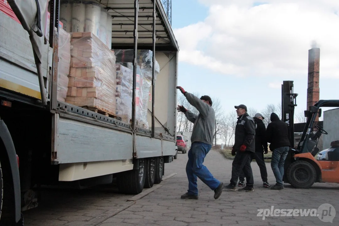 Do Dobrzycy przyjechał dziś wielki tir - wypełniony materiałami budowlanymi. Nie zabrakło cementu, cegieł, papy, czy wełny.