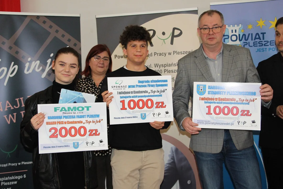 Klasa 4 – SP w Kuczkowie za pracę - Zawód marzeń, Klasa 4 SP w Kwileniu za pracę - Być strażakiem, Klasa 6 SP w Kwileniu za pracę - Z życia fotografa, Klasy 4-8 ZPS w Pleszewie za pracę - Chcę być jak Messi, Klasa 7a ZSP w Kowalewie, SP za pracę - Mam pomysł na biznes, Klasa 8d SP nr 1 w Pleszewie za pracę - Top in job oraz Emilia Molska i klasa IF ZSUG w Pleszewie za pracę - Cukiernik.