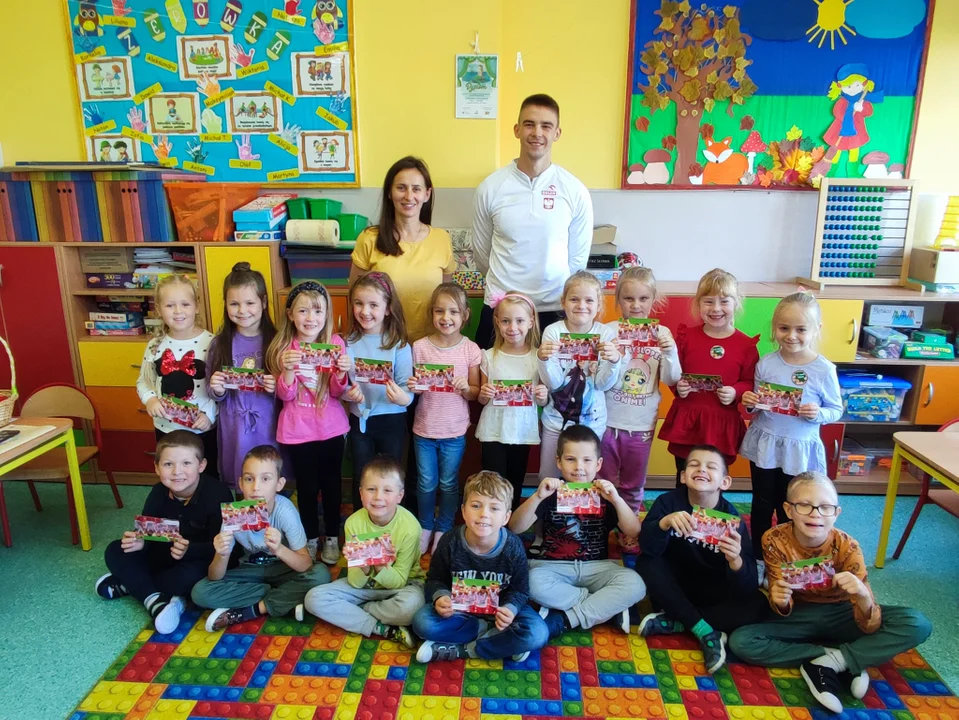 Podczas wizyty w Broniszewicach Mateusz trenował z dziećmi w ramach lekcji wychowania fizycznego, odpowiadał na pytania uczniów, rozdawał autografy i robił sobie zdjęcia z uczniami.