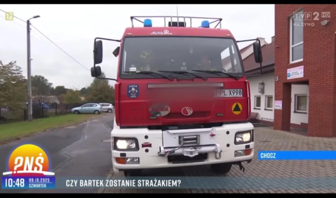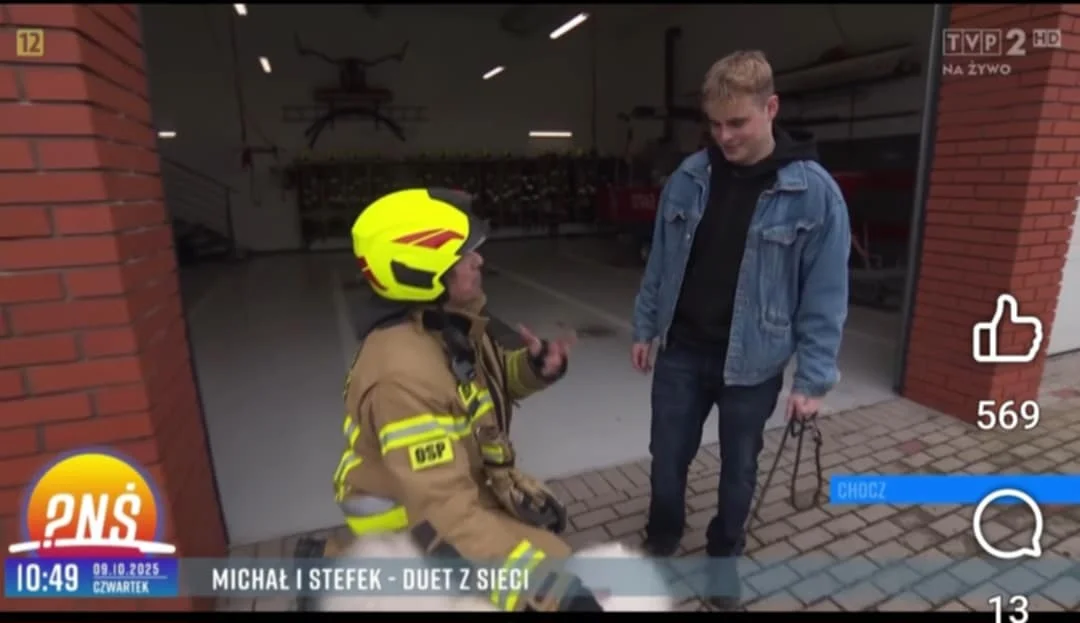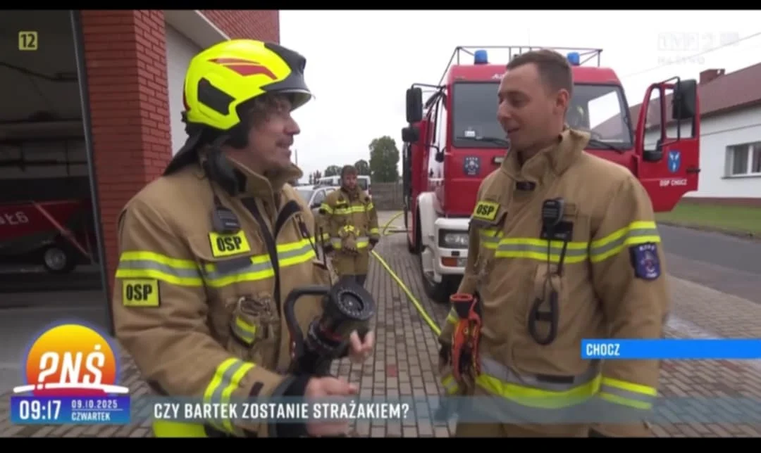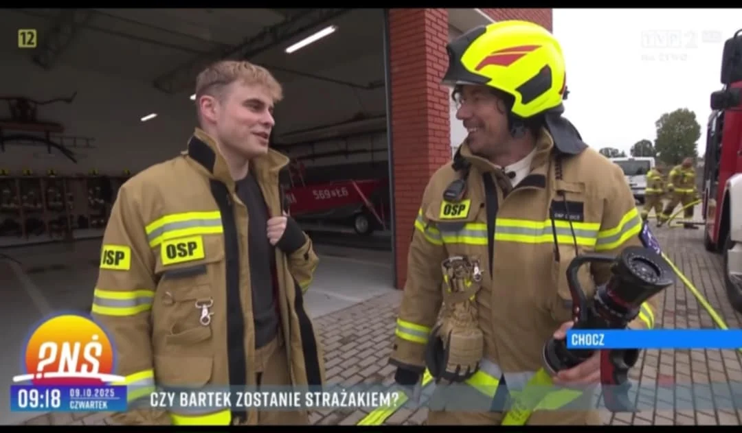 Teraz choczanin opowiedział o swojej aktywności w straży pożarnej oraz Internecie w programie TVP „Pytanie na śniadanie”. Audycję z jego udziałem emitowano w czwartek - 9 października.Z kamerą do chockiej remizy przyjechał Bartosz Osumek, który pytał Boruszczaka m.in. o powody wstąpienia do OSP.