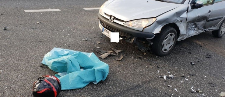 Do wypadku doszło rankiem w powiecie ostrowski. Prowadząca peugeota na pleszewskich tablicach rejestracyjnych skręcając w lewo na S-11 od strony Franklinowa prawdopodobnie nie zauważyła zjeżdżającego z wiaduktu motocyklisty.