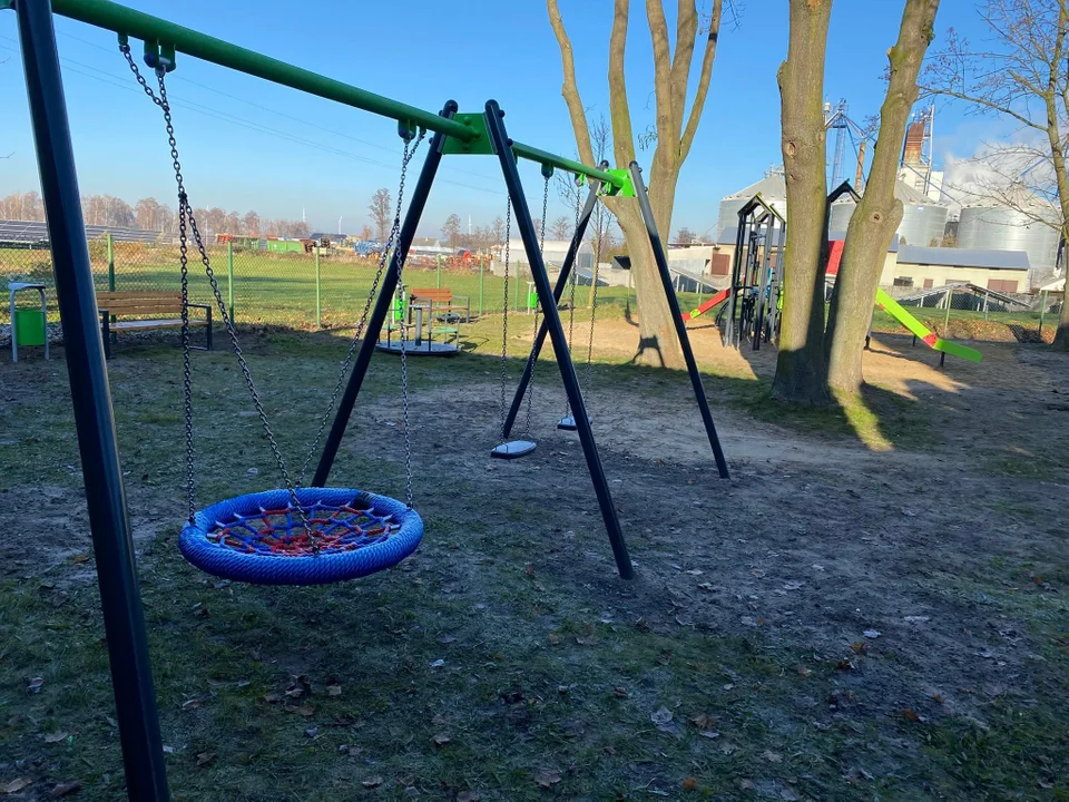Nowy plac zabaw stanowi kompleksową strefę rekreacji. W ramach zadania zrealizowano szereg elementów, które zapewnią bezpieczeństwo i urozmaiconą zabawę najmłodszym. Zamontowano karuzelę tarczową oraz bujak, ustawiono potrójną huśtawkę, zainstalowano zestaw zabawowy, a także ławki i kosze na śmieci.