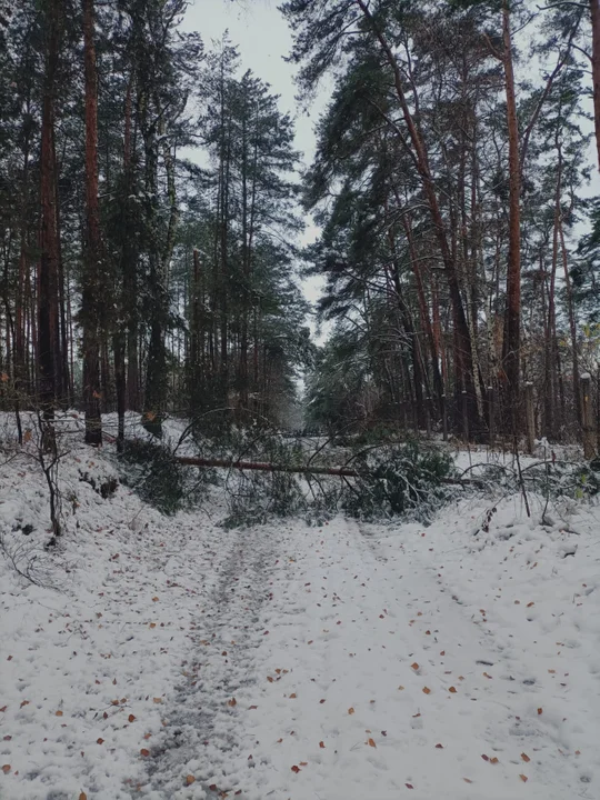 - Mokry, ciężki i topniejący śnieg wyrządził w lasach zauważalne uszkodzenia. Obciążone gałęzie łamią się, a niektóre drzewa zostały przygięte do ziemi pod naporem białej masy.