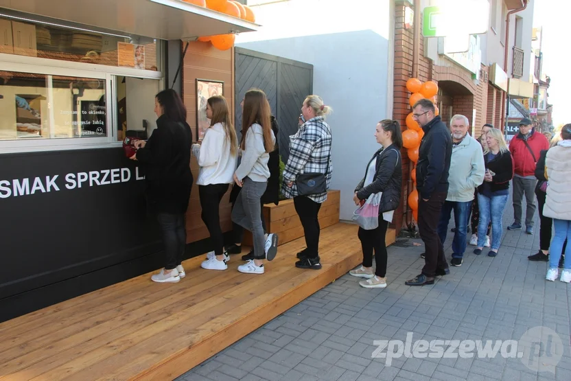 Na otwarcie Pączkowni przu ul. Kaliskiej przybyło wiele osób. Było pachnąco, kolorowo i gwarno. Kolejkę rozbawiał przebrany za pączka animator, najmłodszym wręczano balony, a starsi – zaopatrywali się w firmowy przysmak.