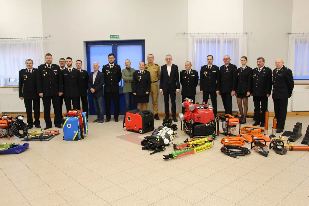 Druhowie z Pleszewa wzbogacili się o zestaw narzędzi hydraulicznych (nożyce, rozpierak ramieniowy, rozpierak kolumnowy, pompa hydrauliczna, wąż hydrauliczny, zestaw łańcuchów do rozpieraka ramiennego i kolumnowego, wspornik progowy, stanowisko narzędziowe), drabinę strażacką, agregat prądotwórczy, aparaty powietrzne, zestaw podpór, prądownice, węże tłoczne, drabiny nasadkowe, zestaw poduszek wysokociśnieniowych oraz zestaw ratownictwa medycznego. Łączna wartość to 220 591,80 zł.