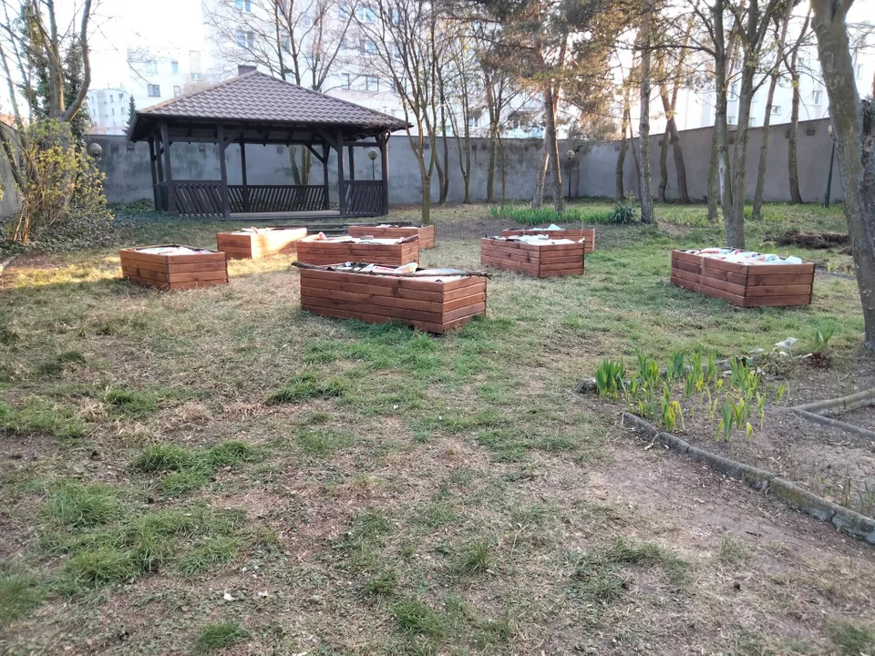 Prace idą pełną parą. Teren został uporządkowany, a skrzynie osadzone i przygotowane do pierwszych upraw.