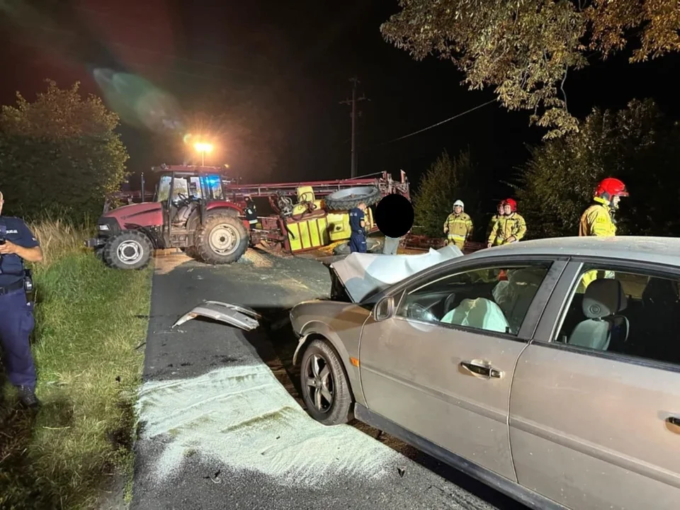 Do kolizji doszlo w poniedziałek (1 września) około godziny 22.00 w Taczanowie Drugim. Osobówka uderzyła w tył opryskiwacza ciągniętego przez traktor. Na miejsce wezwano policję.
